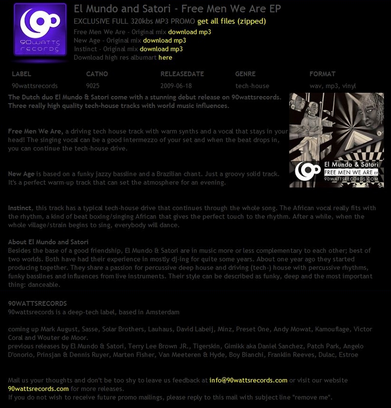 90wattsrecords exclusive promo: El Mundo & Satori - Free Men We Are EP