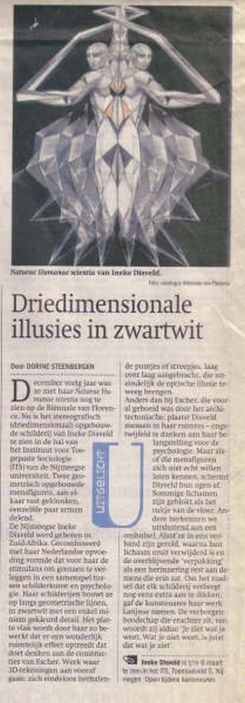 Press release in newspaper De Gelderlander about an exhibition of my paintings at the ITS (Institute of Applied Sociology). Unfortunately not exactly readable, but I couldn't get it any sharper: