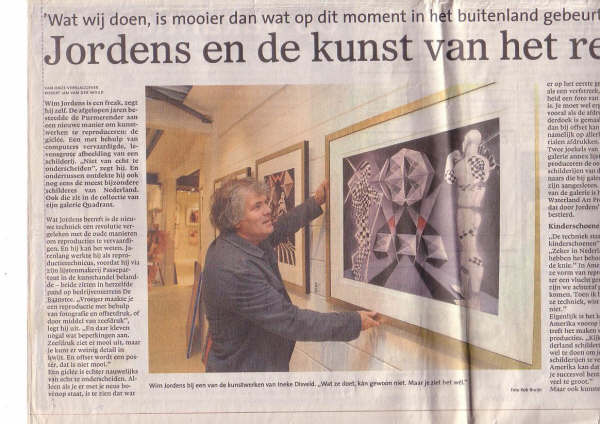 Article about my work, which can be seen at Waterland Art Press in Purmerend, in a local newspaper in Purmerend: